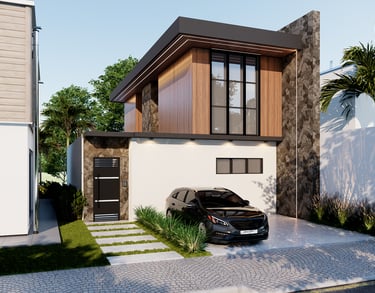 Design Contemporâneo: 103m² inteligentemente distribuídos, com 3 dormitórios e fachada com detalhes em ripado de pinus tratado.